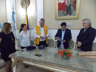 El vice intendente Morandini, en representación del Ejecutivo Municipal, que por cuestiones de agenda se encuentra en Buenos Aires, le obsequió un mate y una bombilla y les expresó a los "leones" la gratitud por la labor de servicio que prestan a la comunidad agradeciendo además la visita dejando en claro la importancia que tienen las ONG's para el trabajo en conjunto con los gobiernos en pos de mejorar la calidad de vida de los ciudadanos.