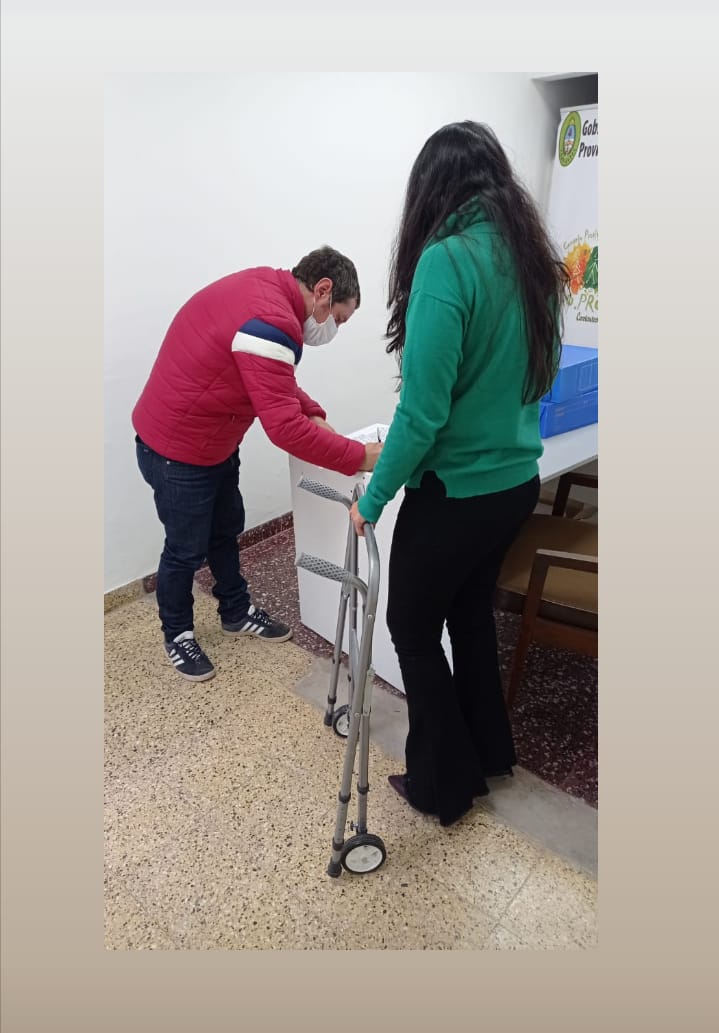 La misma se llevó a cabo desde las oficinas de COPRODIS ubicadas en Catamarca 580, y la directora, Roxana Tannuri, entregó un andador para adulto destinado a una familia de la localidad de Mercedes, bastón verde y muletas para Capital.