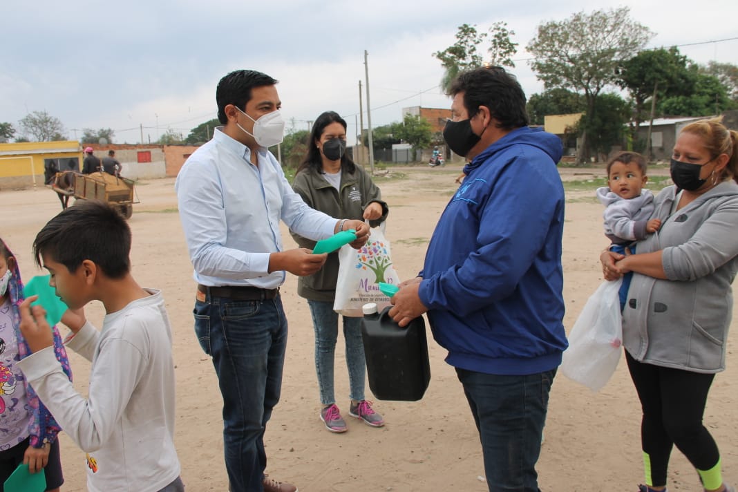 Este martes 13 el Ministerio de Desarrollo Social entregó lavandina y barbijos en los barrios Asentamiento Patono 1 y B San Martin.