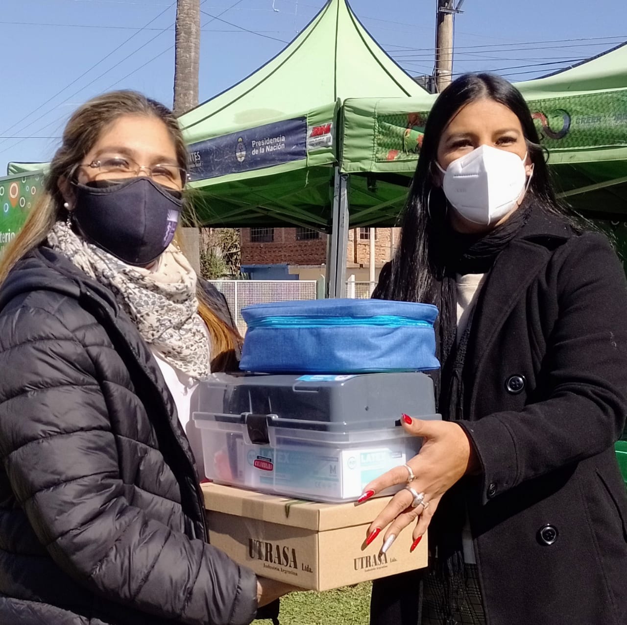 Los Kits entregados contenían: Tensiómetro, pinza de disección, pinza cocher, oxímetro de pulso, Guantes de látex , descartador de agujas de bolsillos, anteojos de seguridad, tijeras, maletín de enfermería, mango de bisturí, estetoscopio, lazo hemostático, termómetro clínico y unas zapatillas especialmente hechas por la Cooperativa UTRASA.