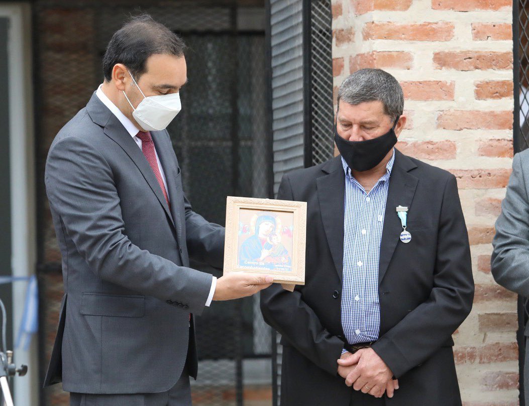 Durante su visita, el mandatario estuvo acompañado por el director de Malvinas Argentinas, José Galván, ministros y legisladores, y fue recibido por la intendenta Lucrecia Vásquez y el presidente de la institución local, Amado Torres, en la intersección de Juan de Garay y San Martín, donde se encuentra la nueva sede.
