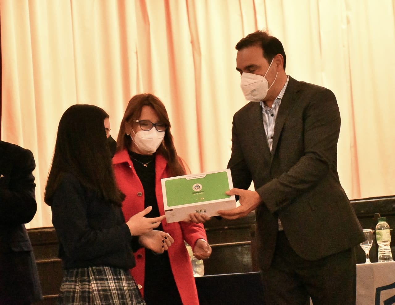 En la ocasión se hizo entrega a las autoridades de la Escuela Normal “Mariano I. Loza” equipamiento escolar consistente en Tótem expendedor de alcohol 70/30; pistola termómetro digital y barbijos para docentes para mantener la presencialidad cuidada.