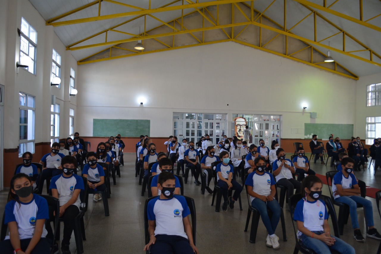 “Cuando uno ve a los alumnos de la promo y a los de cuarto y quinto grado que están ya en la presencialidad, uno detecta la calidad educativa que tiene la escuela”, consideró y dirigiéndose a los estudiantes planteó: “Hoy vinimos a visitarlos para traer regalos, pero también para decirles que estar en la escuela es el lugar más lindo en el que pueden estar”.