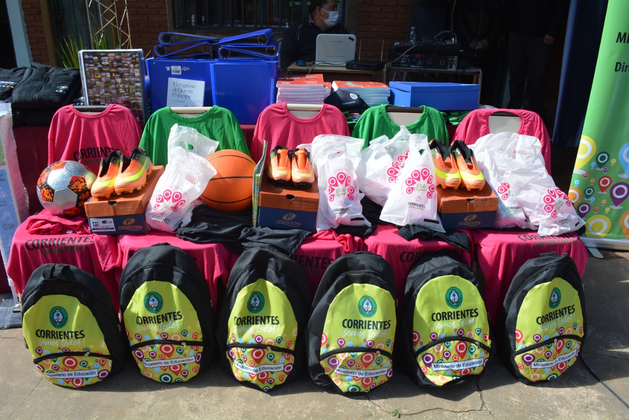 En la oportunidad, el Gobierno de la Provincia de Corrientes a través del Ministerio de Educación hizo entrega a los mencionados establecimientos educativos: tótem expendedor de alcohol, pistola termómetro digital, barbijos para docentes, kit de limpieza, alcohol en gel, set de útiles nivel primario, mochilas, zapatillas, buzos, pilotines para la lluvia, equipo deportivo, banderas de izar, bibliografías. Así como también a través del programa “Mitai Digital”, se realizó la entrega de módulos que contienen tablets (TABIS), adaptadas para los niños con cobertor de seguridad y aplicaciones educativas para aprender jugando, e ir incorporando tecnologías en las instituciones educativas permitiendo crear en las distintas salitas ambientes estimuladores para la construcción de conocimiento. Este programa prevee también el acompañamiento a los docentes con instancias de formación y reflexión sobre nuevas estrategias pedagógicas y con el desafió de poner la herramienta informática al servicio del desarrollo de otras capacidades de los niños.