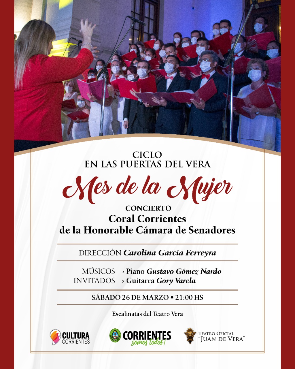 El Instituto de Cultura de Corrientes invita a la tercera presentación del Ciclo "En las Puertas del Vera", dedicado al Mes de las Mujeres Trabajadoras, que tendrá como protagonista a Coral Corrientes. Se presentará este sábado 26 de marzo, a las 21, en las escalinatas del teatro, con acceso libre.