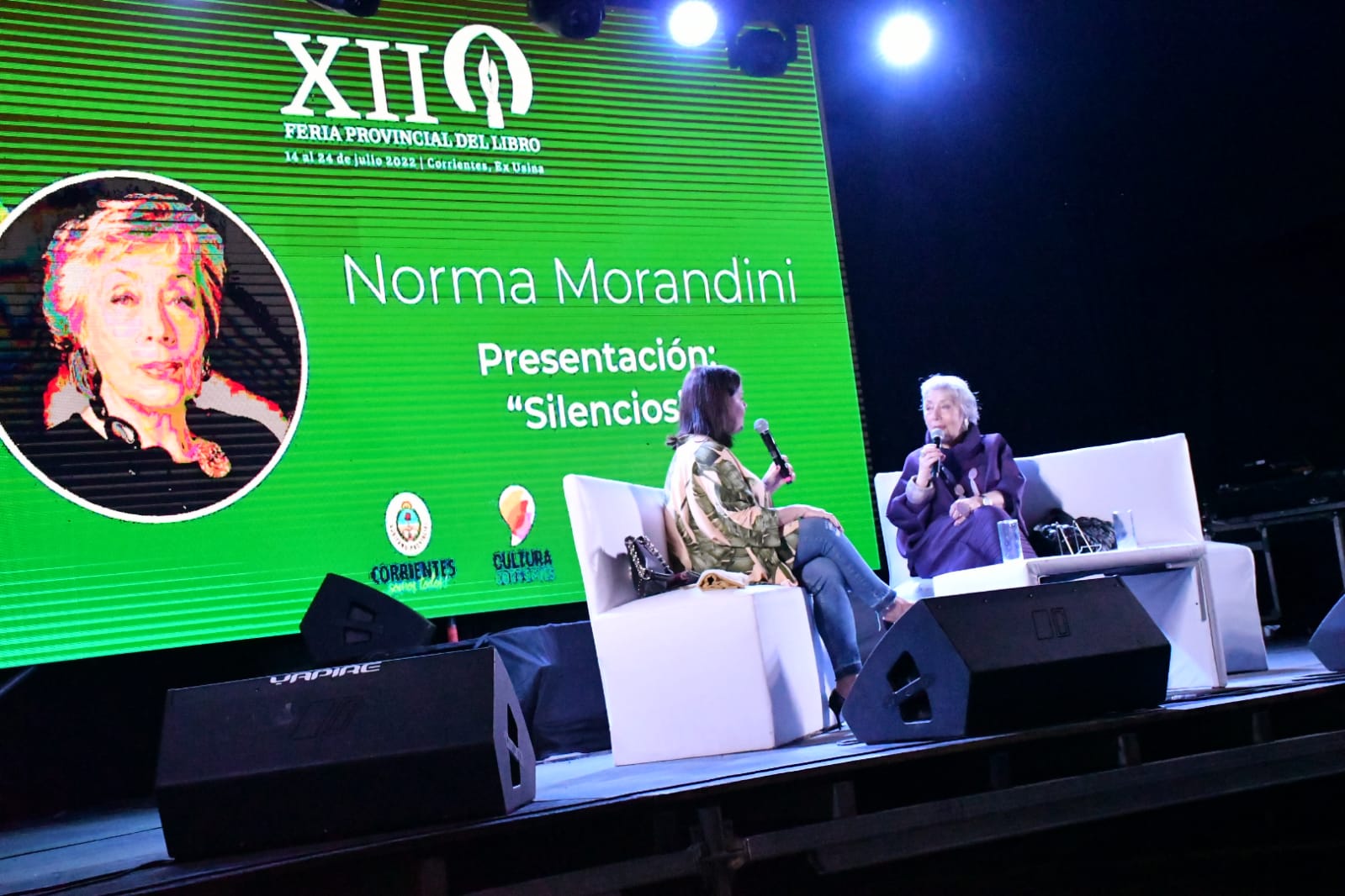 También en el escenario principal, pero luego de “Rocambole”, fue el turno de la periodista, política y escritora, Norma Morandini, que presentó el libro “Silencios”, de su autoría. En el mismo retrata momentos y hechos durante su confinamiento en España por la pandemia, y asegura que el Covid la obligó “al silencio en Madrid, donde estuvo encerrada durante 8 meses: es en ese silencio, donde se da el diálogo con uno mismo, es donde surge la verdad personal”.