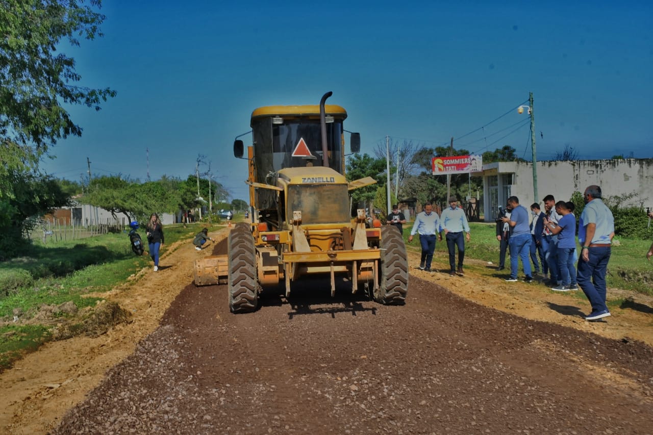 Siguiendo con las actividades en la localidad, el Gobernador recorrió las obras de la pavimentación de la calle FR. Juan de Gamarra tramo que comprende el ejido urbano Itatí y el enripiado y cordón cuneta de la calle Coronel Vallejos.