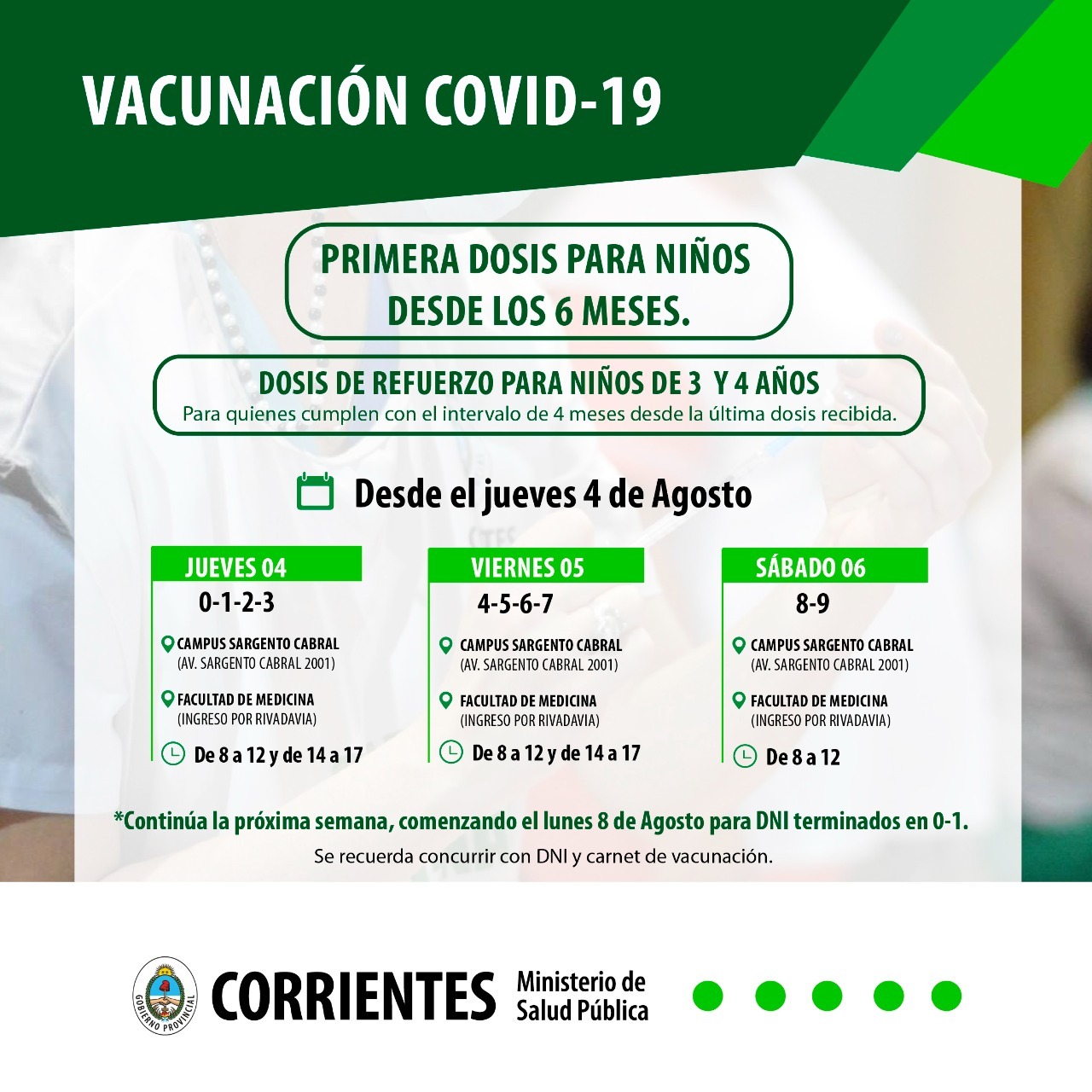 Al igual que en todo el país, desde este jueves Corrientes se suma al inicio de la vacunación contra COVID-19 para los niños desde los 6 meses de edad hasta los 2 años, 11 meses y 29 días, y para iniciar o aplicar refuerzos en población pediátrica de 3 y 4 años.