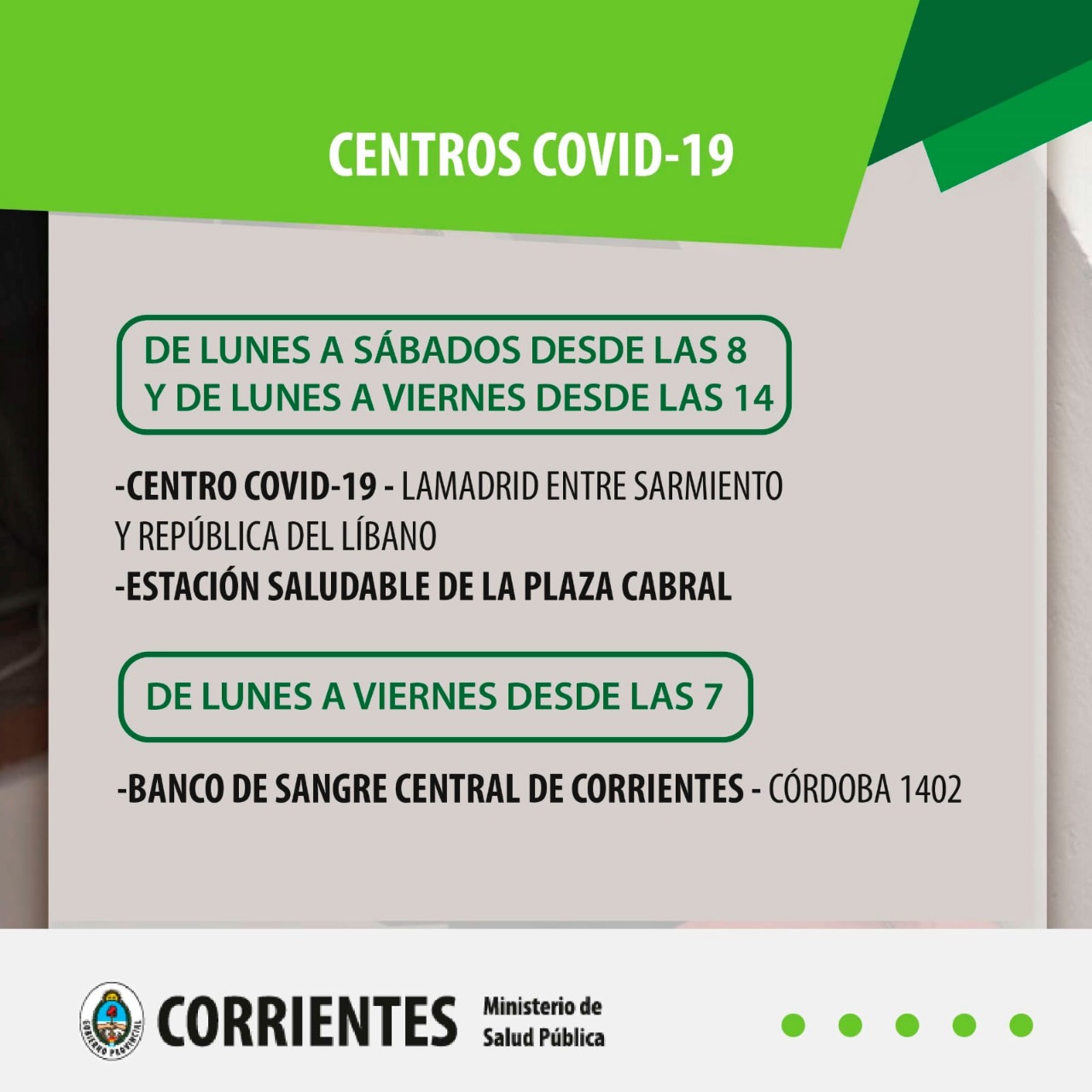 El Ministerio de Salud Pública de la Provincia, a través de la Dirección general de Epidemiología, recuerda a la comunidad cuáles son los Centros de Testeos Covid-19 habilitados.