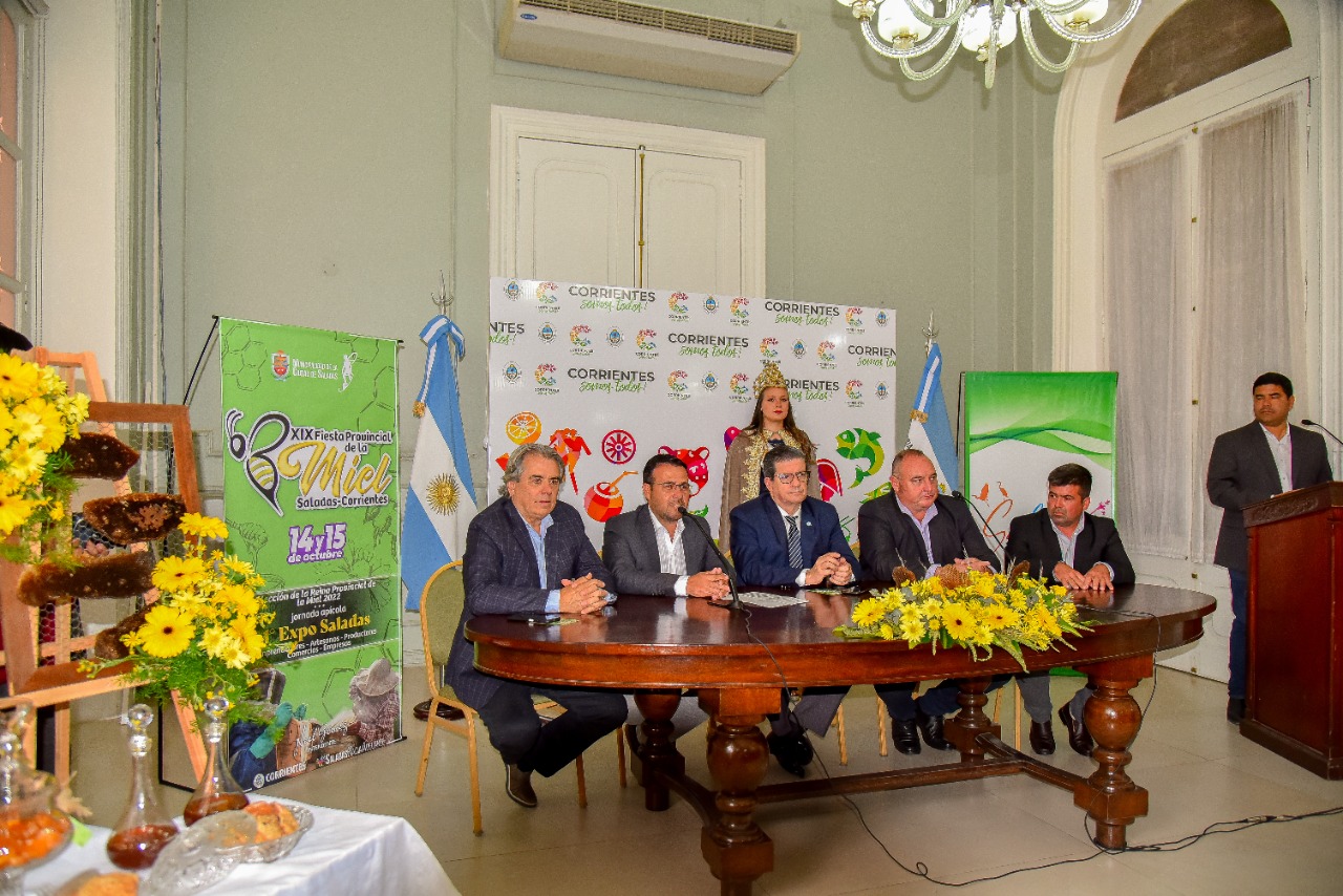 Este miércoles en Casa de Gobierno se presentó la 19° edición de la Fiesta Provincial de la Miel, que se realizará el 14 y 15 de octubre en Saladas. El acto estuvo encabezado por el vicegobernador, Pedro Braillard Poccard acompañado del intendente saladeño, Noel Gómez y demás autoridades municipales.