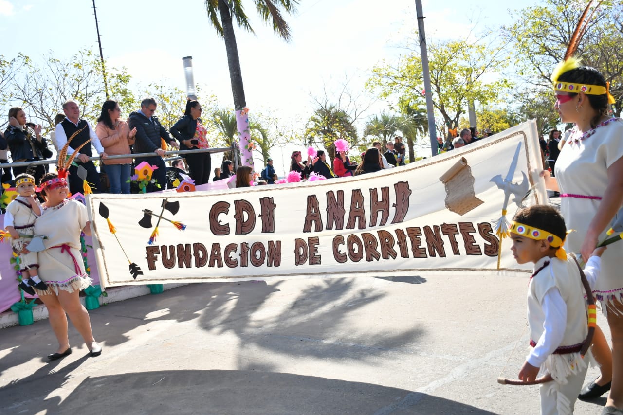 De esa manera el CDI Anahí arrancó el desfile con la representación de “la Fundación de Corrientes”, el CDI Grillito Saltarín mostró “Costumbres Correntina”, del barrio Santa María; el CDI San Jorge “Ibera: el Renacer”; CDI Niño Feliz “Flora del Iberá”; CDI Mi Pequeño Hogar “Leyenda el mono Carayá”; CDI San Juancito la “Leyenda del Pombero”, CDI Aventuras en pañales “Pesca del dorado y el surubí”; DCI Mis ositos “Yerba Mate”, CDI Mamita Jy'i; CDI Rayito “Itatí, Fiesta del Chamamé”; CDI Rosa Guarú “Carnavales Correntinos”.