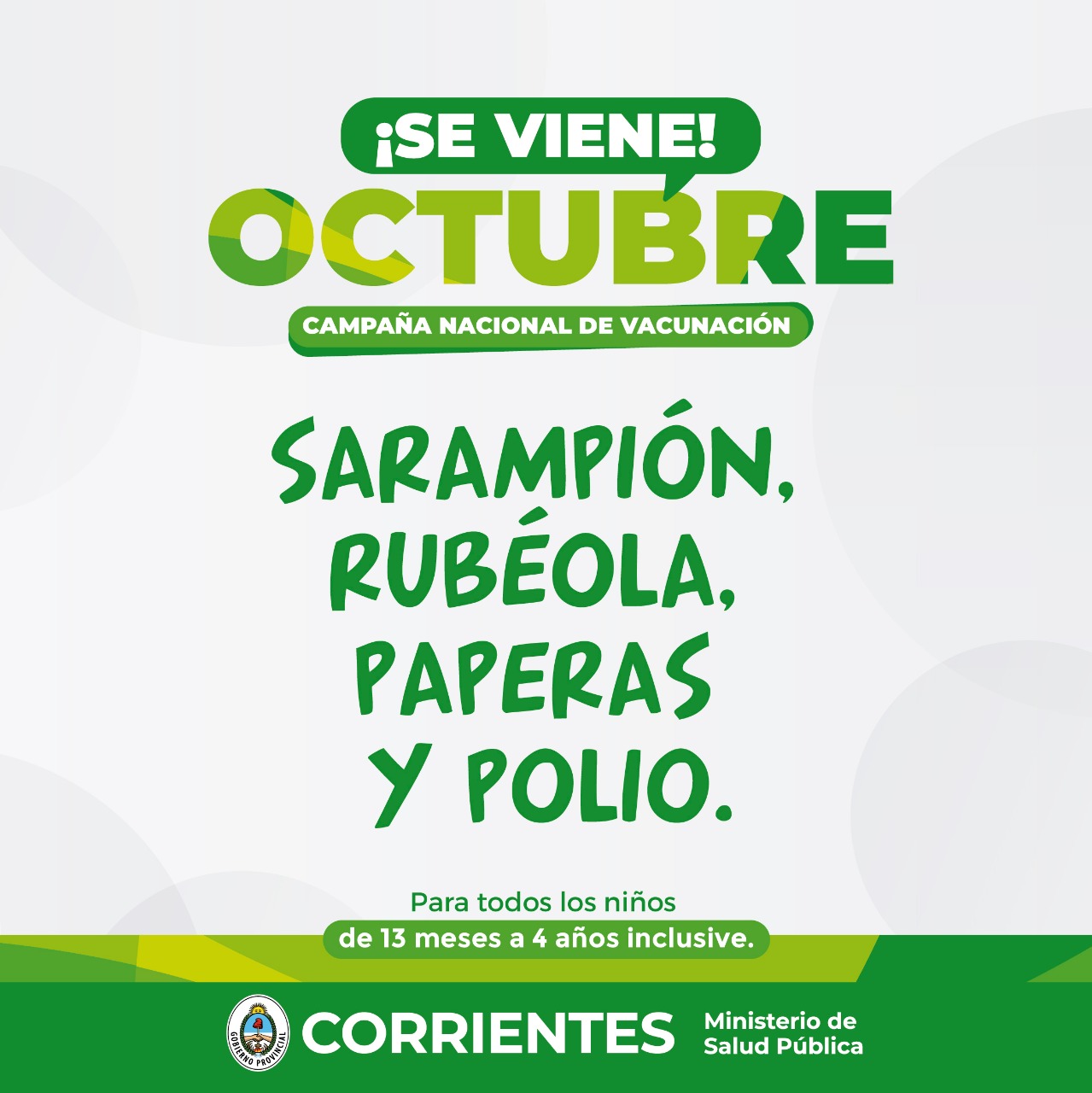 Durante octubre el Gobierno provincial a través del Ministerio de Salud Pública llevará adelante la Campaña de Vacunación contra Sarampión, Rubéola, Paperas y Poliomielitis 2022. El lanzamiento formal en la capital será este lunes 3 de octubre y se realizará junto con el Ministerio de Educación de la Provincia.