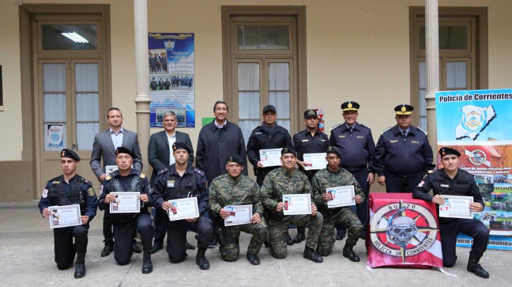 En un acto presidido por el ministro de Seguridad, doctor Buenaventura Duarte se entregaron los certificados de aprobación a integrantes de la Policía de Corrientes que completaron el Primer Curso de Buceo Policial en las especialidades de Búsqueda, Recuperación y Rescate.