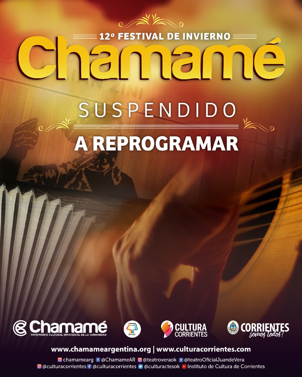 El Festival de Invierno del Chamamé programado en el Auditorio "Julian Zini" se reprogramará para una nueva fecha a comunicar la próxima semana.