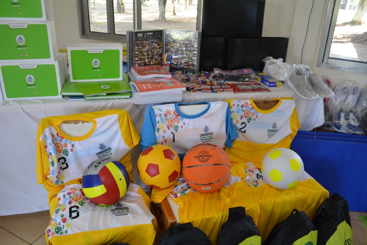Durante el acto, el Gobierno de Corrientes, a través del Ministerio de Educación de acuerdo hizo entrega de los siguientes elementos sanitarios, deportivos, útiles escolares materiales administrativos.