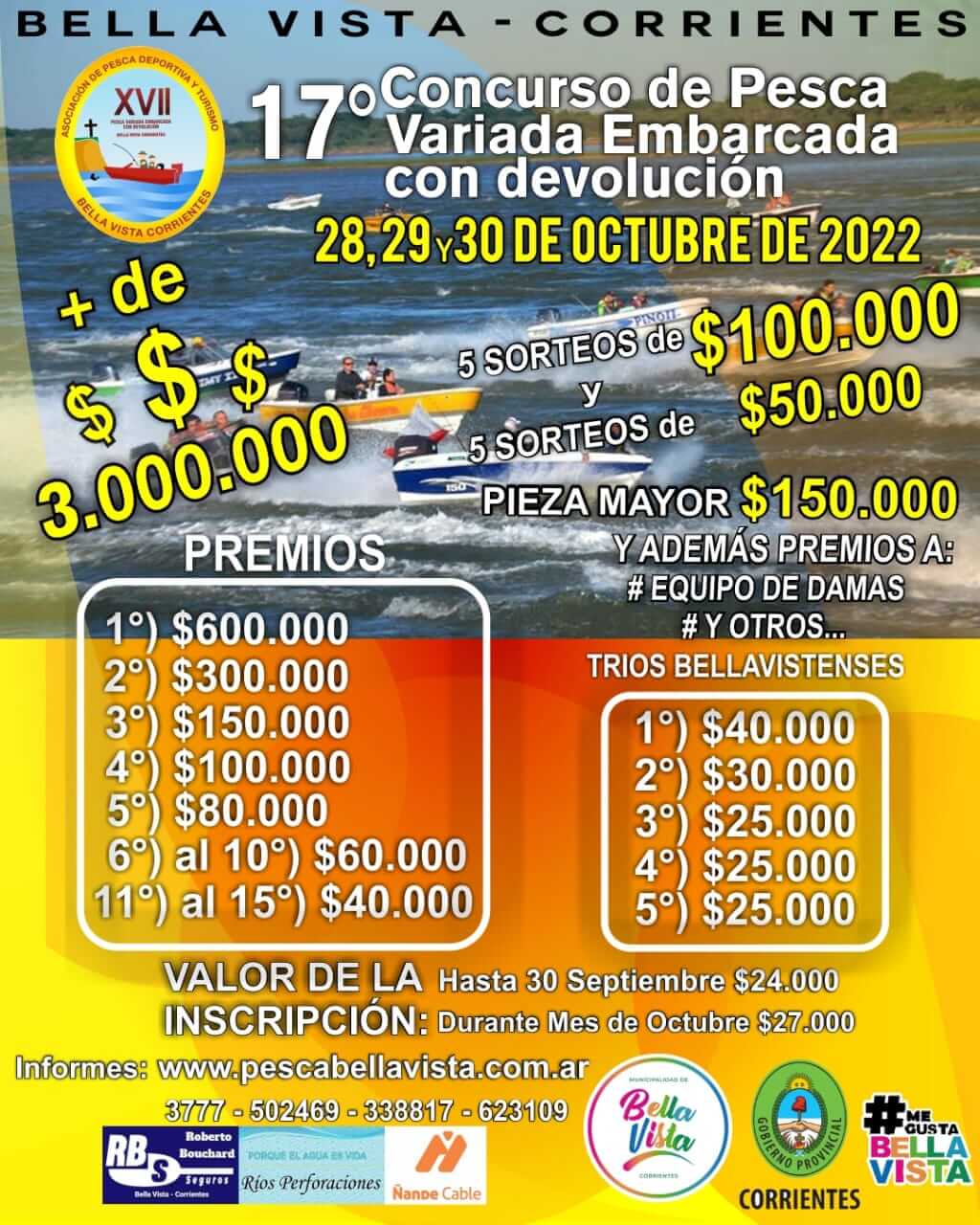 El valor de la inscripción es de $27.000 por equipo y los interesados pueden recabar informes e inscripciones en www.pescabellavista.com.ar.