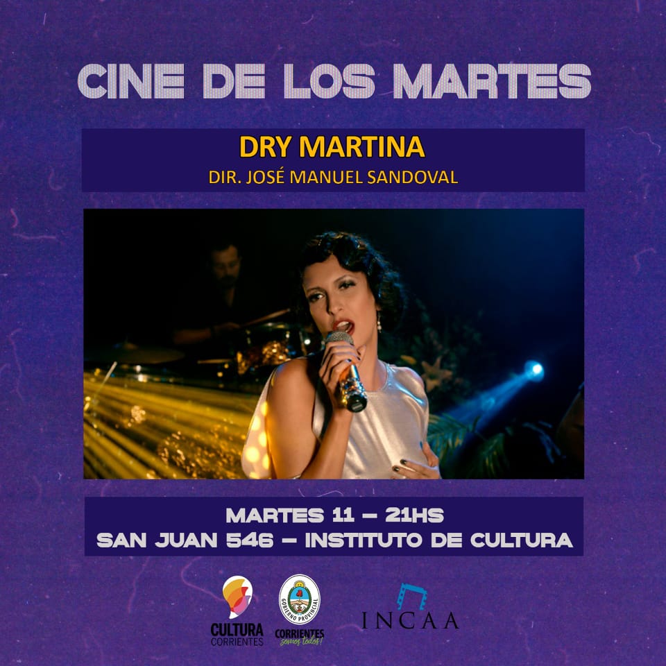 En el patio cubierto del Instituto de Cultura (San Juan 546) se proyectará hoy, a las 21, la película “Dry Martina” de José Sandoval. Como siempre, este clásico de los martes, es con entrada libre y gratuita.