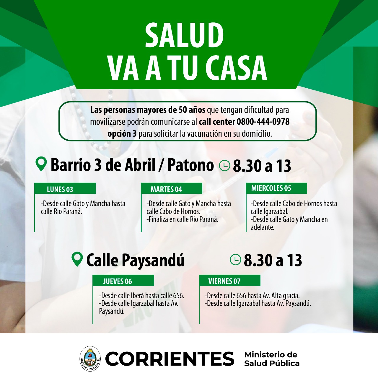 La tarea se enfoca en completar esquemas de vacunación Covid-19 de los mayores de 50 años. Al momento de la visita, el vacunador solicitará carnet de vacunación.