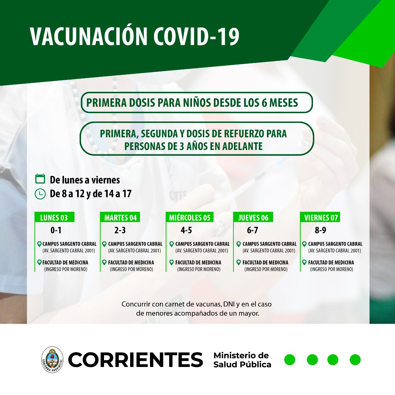 Se recuerda concurrir con DNI y carnet de vacunación, en el caso de los menores acompañados por un adulto.