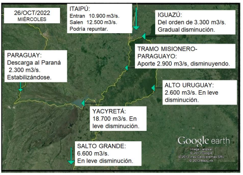 La futura evolución hidrométrica dependerá fuertemente de la evolución de las lluvias en la cuenca de aporte de respuesta más rápida (cuenca del río Iguazú, cuenca próxima al embalse de Itaipú y cuenca de aporte al tramo misionero-paraguayo). Se espera que continúe aumentando durante las próximas semanas, en coincidencia con la estacionalidad típica del sistema (patrón de variación estacional), si bien los valores de base aún se encuentran por debajo de lo normal.