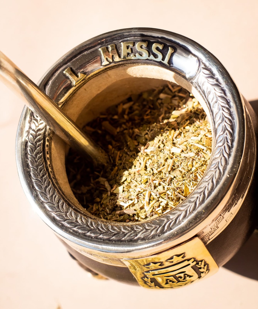 A diferencia de los encargos previos, explicó Domingo, “estos mates son distintos, tipo imperiales, no como los anteriores que eran tipo calabaza con detalles en metal. Estos son forrados en suela y alpaca, tienen el escudo de la AFA y los nombres de cada jugador”, detalló.