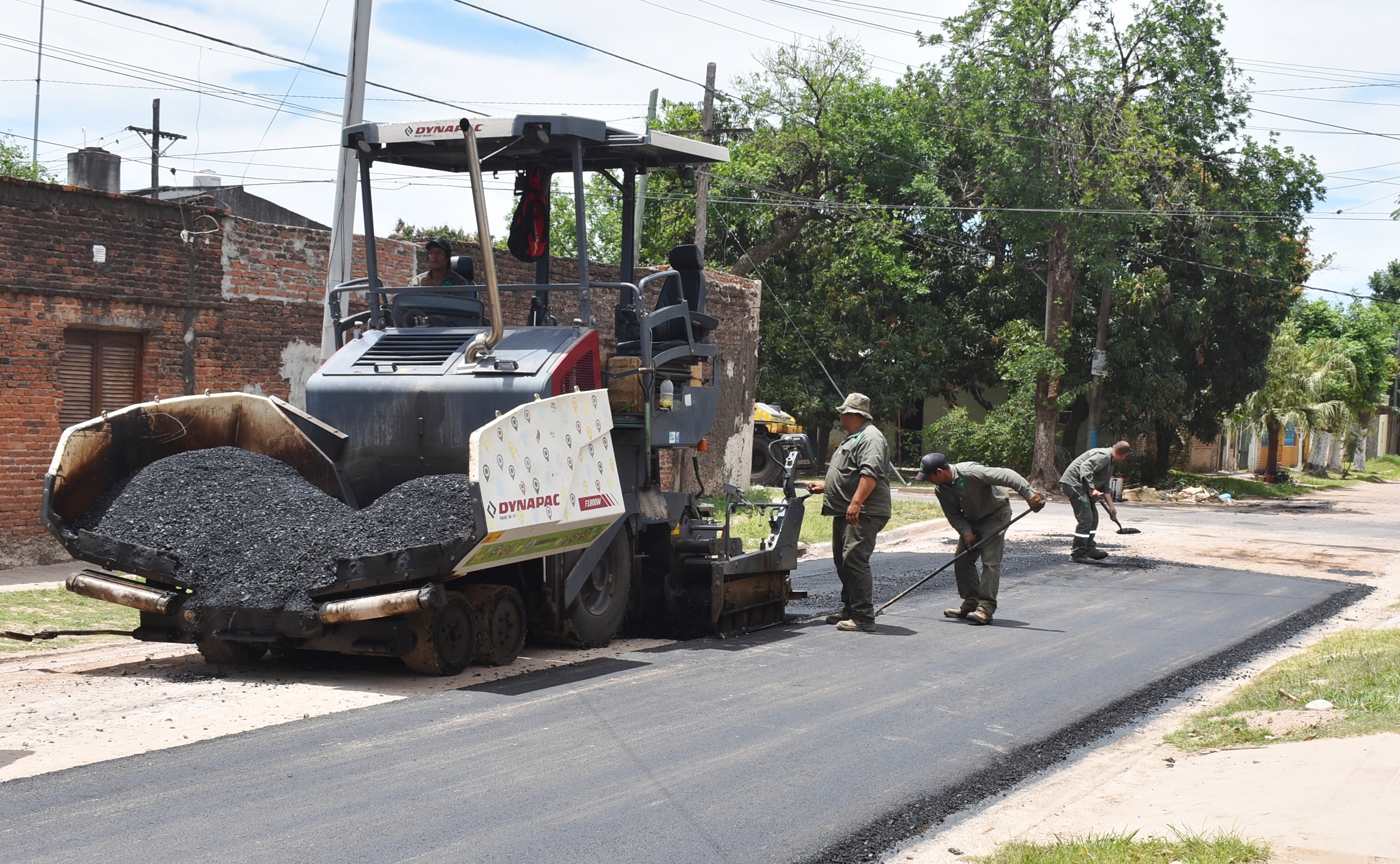 Los trabajos, encarados por el Ministerio de Obras y Servicios Públicos a través de los equipos de Vialidad Urbana, comenzaron en la calle Las Heras, arrancando desde su cruce con Tacuarí avanzando hacia la avenida Chacabuco, donde se provee de una primera capa asfáltica que da soporte a la carpeta final.