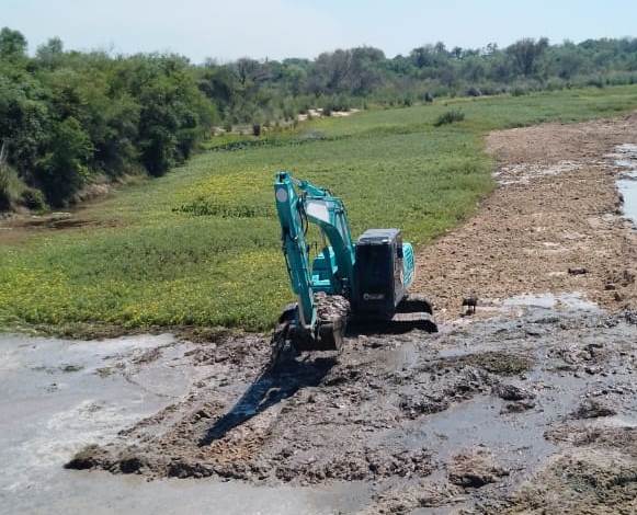 Ante la sedimentación de material y aprovechando esta época de pocas lluvias, el Gobierno Provincial está limpiando el cauce del Riachuelo en el sector ubicado en cercanías del puente en el acceso a la localidad de San Luis del Palmar.
