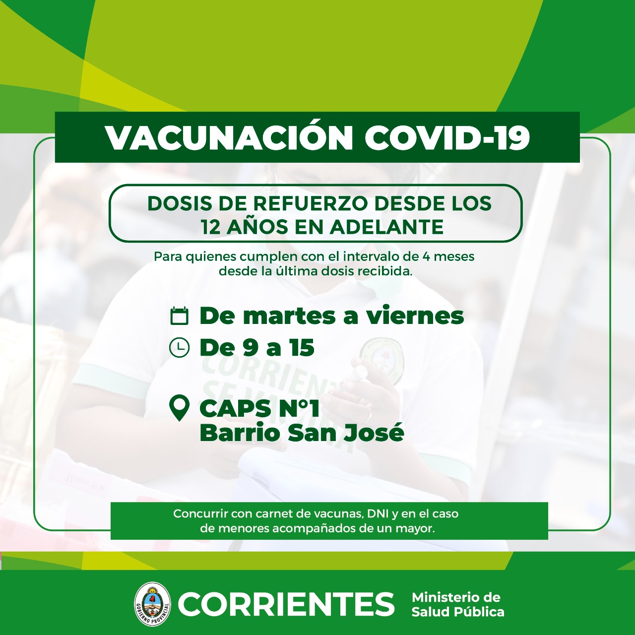 Se recuerda concurrir con DNI y carnet de vacunación, en el caso de los menores acompañados por un adulto.