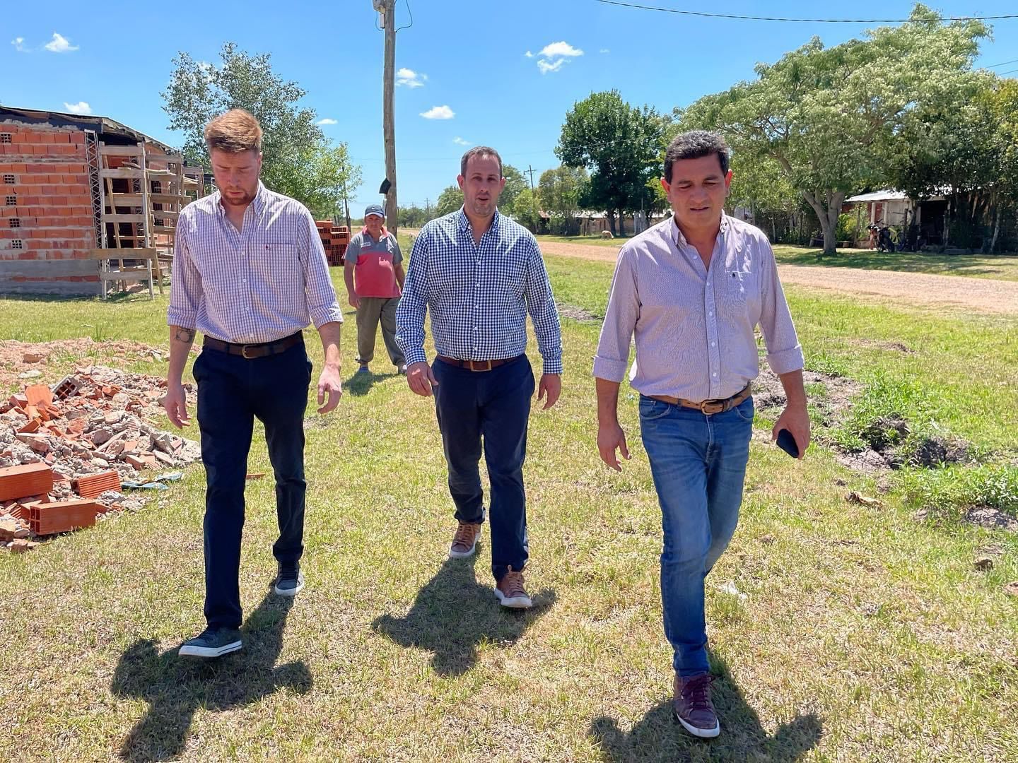 Saloj, acompañado por el comisionado interventor local, Dante Romero y el secretario de gobierno, Joel Acheriteguy, supervisó la marcha de la construcción de 10 viviendas del programa Oñondivé que se lleva adelante a través del INVICO, las que se encuentran en un grado importante de avance y que servirán para darles una solución habitacional a familias de Cazadores Correntinos