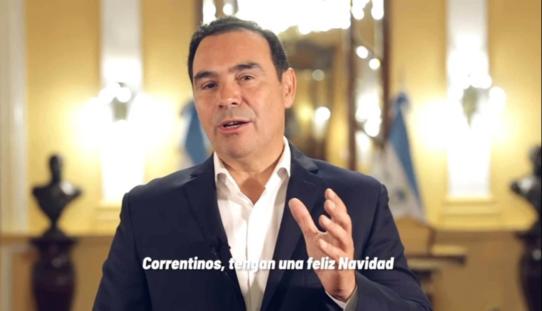 El Mandatario hizo llegar sus augurios mediante un video, en el que expresó: "Que el nacimiento del niño Jesús llene nuestros corazones de paz, amor y felicidad y que la estrella de Belén nos guíe siempre por el camino del bien. Correntinos, tengan una feliz Navidad, celébrenla en familia, en paz, en unidad, con amor y con alegría. ¡Muchas felicidades!"